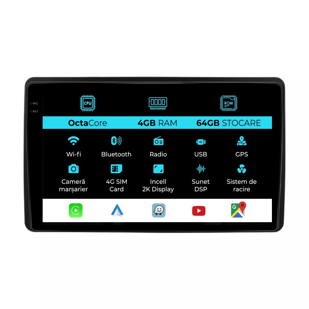 Conectivitate rețea: | 4G, Hotspot telefon, router extern, dongle 3G sau 4G, CarPlay/Android Auto |
