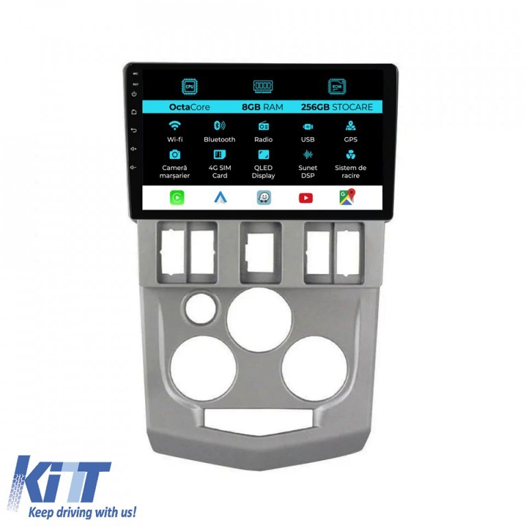 Navigatie Dedicata Dacia Logan 1 (2004-2008), 9Inch, 8Gb Ram, 256Gb Stocare, Carplay Performance AutoTuning