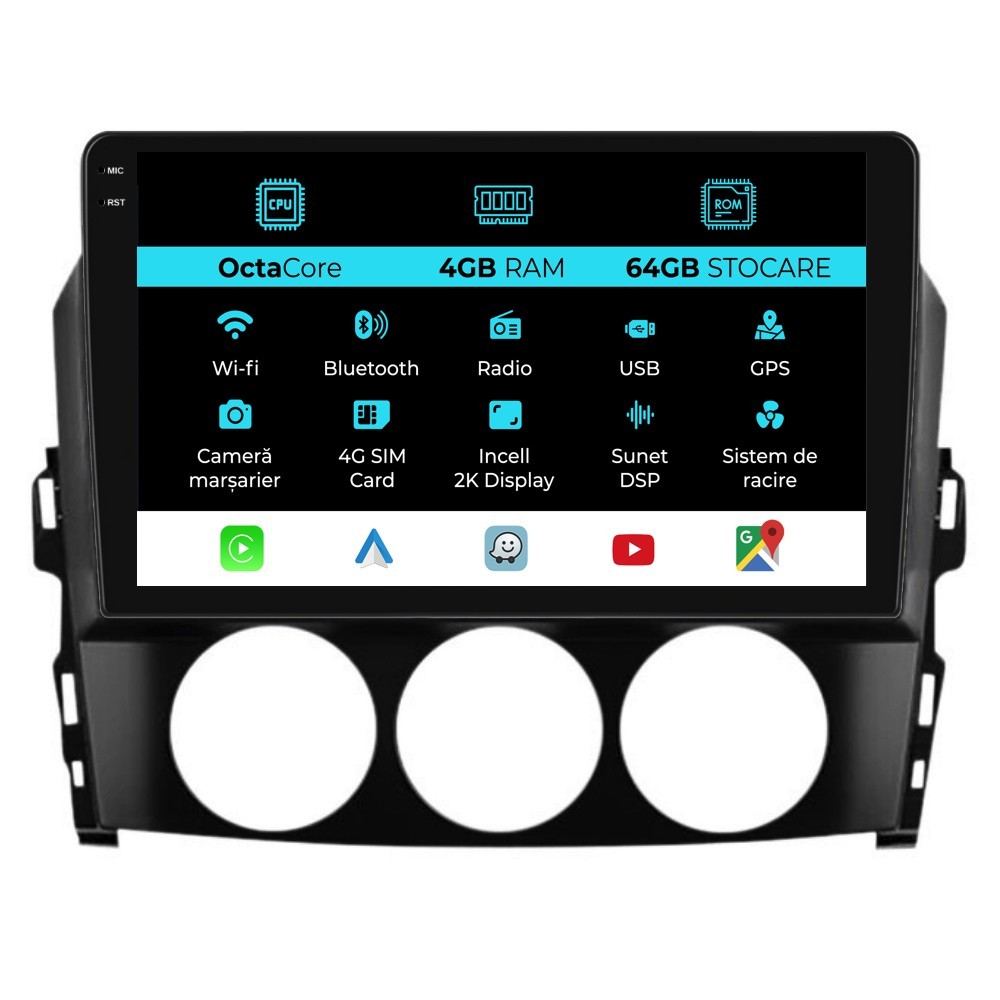Navigatie Dedicata Mazda MX-5 (2005-2015), 2K, 4Gb Ram, 64Gb Stocare, Carplay