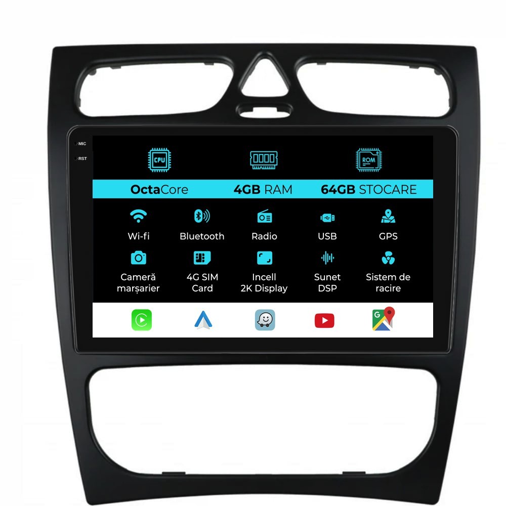 Navigatie Dedicata Mercedes C-Class W203 CLK W209 (2000-2005), 2K, 4Gb Ram, 64Gb Stocare, Carplay