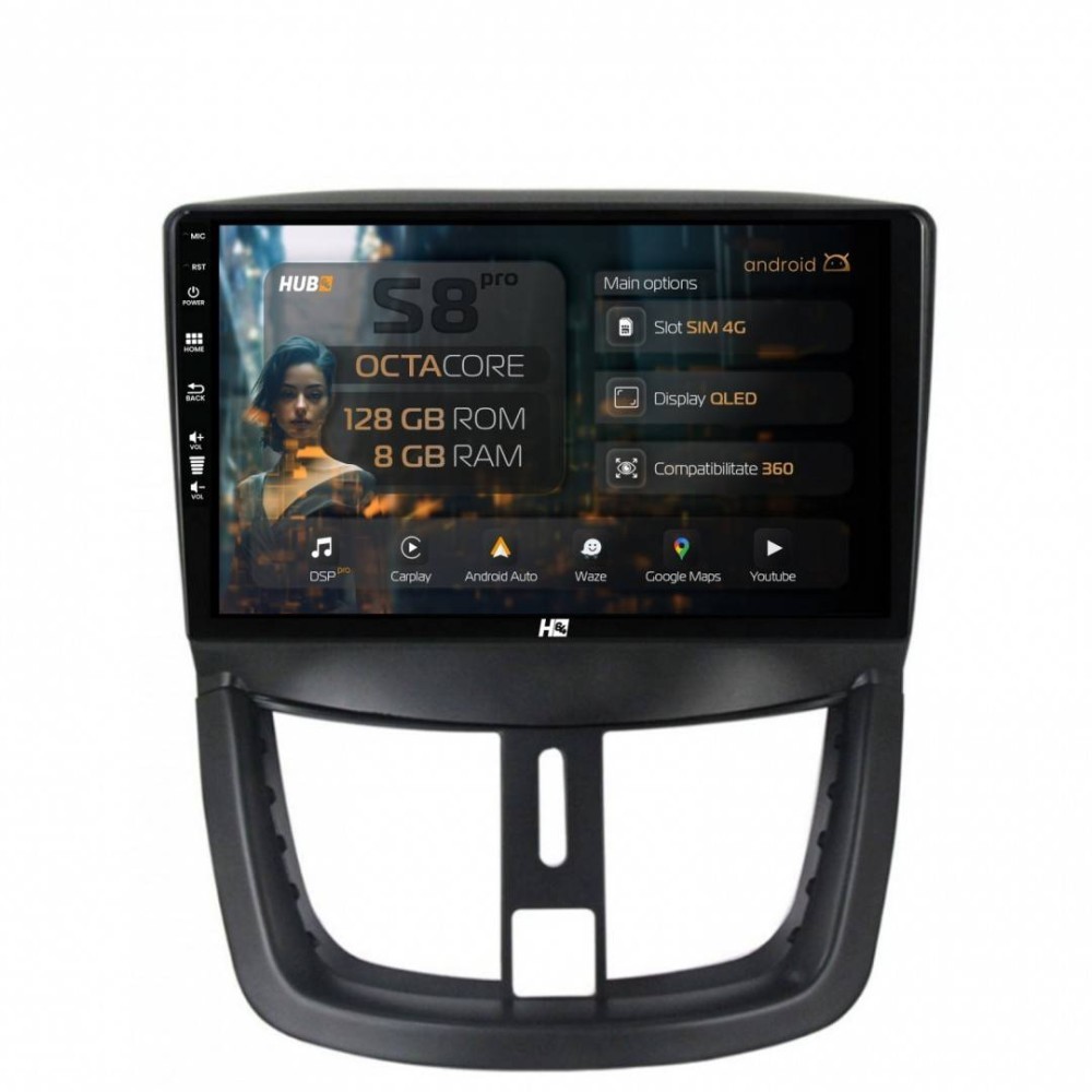 Navigatie Peugeot 207 8GB RAM Android 13 Octacore Slot Sim 4G DSP GPS Wi-FI Carplay Android Auto USB Bluetooth Waze Touchscreen 9 Inch
