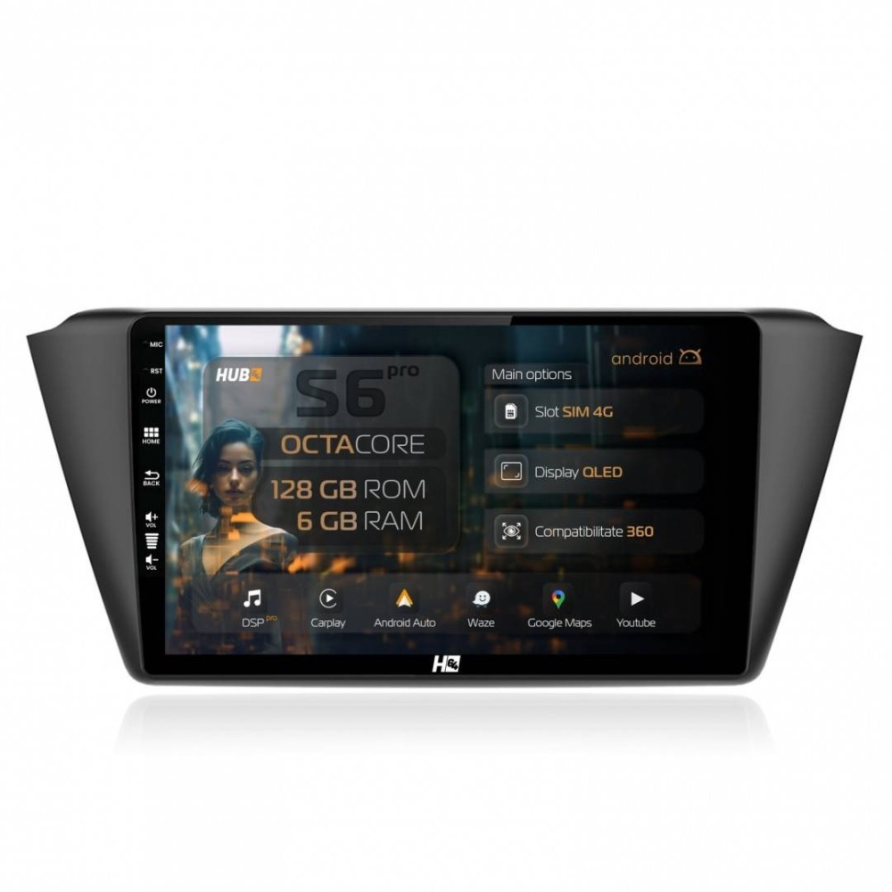 Navigatie Skoda Fabia (2015+) 6GB RAM Android 13 Octacore Slot Sim 4G DSP GPS Wi-FI Carplay Android Auto USB Bluetooth Waze Touchscreen 9 Inch