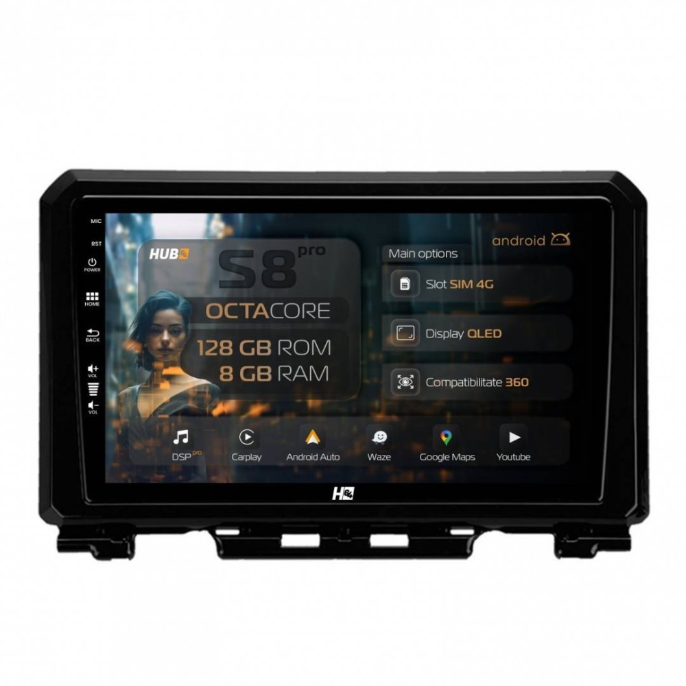 Navigatie Suzuki Jimny (2018-2022) 8GB RAM Android 13 Octacore Slot Sim 4G DSP GPS Wi-FI Carplay Android Auto USB Bluetooth Waze Touchscreen 9 Inch