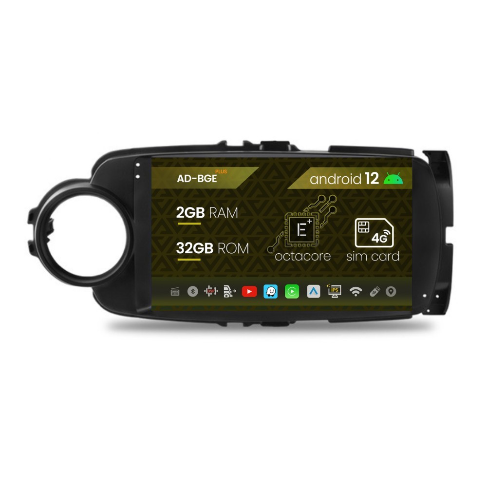 Navigatie Toyota Yaris (2010-2018), Android 12, E-Octacore 2GB RAM + 32GB ROM, 9 Inch - AD-BGE9002+AD-BGRKIT104B