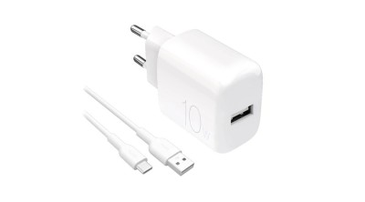 Încărcător de perete Puro PROLITE 10W USB-A + Cablu USB-A la USB-C 1.2m – Alb