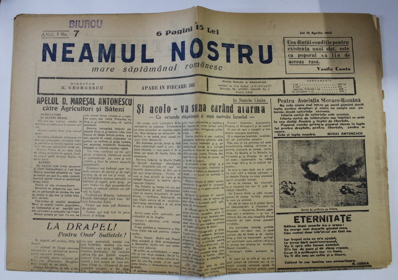 NEAMUL NOSTRU , MARE SAPTAMANAL ROMANESC , ANUL I , NO.7 , 15 APRILIE , 1943