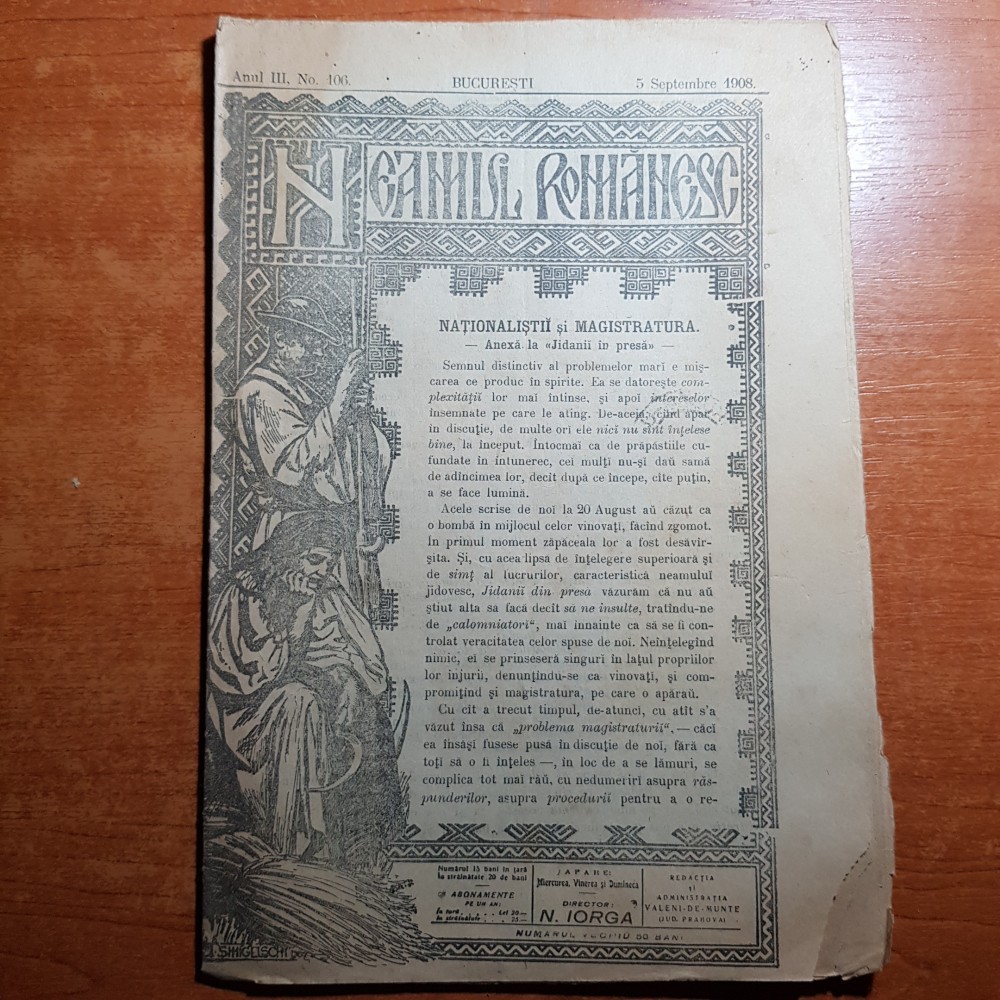 neamul romanesc 5 septembrie 1908-art. "natonalistii si magistratura" de n.iorga