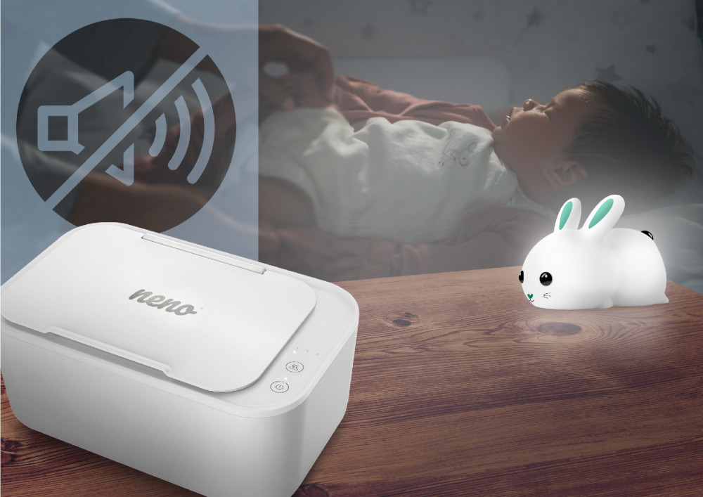 A spune că Neno Calor este liniștit ar fi o minciună. Încălzitorul Neno Calor este COMPLET SILENȚIOS! Multe mame nu cred că dispozitivul funcționează și își verifică cu mâna dacă șervețelele sunt într-adevăr încălzite. Singurul sunet pe care îl vei auzi este un delicat „pik” atunci când setezi temperatura, plus râsul vesel și lipsit de griji al copilului tău, care va adora atingerea caldă a șervețelului umed pe pielea sa.