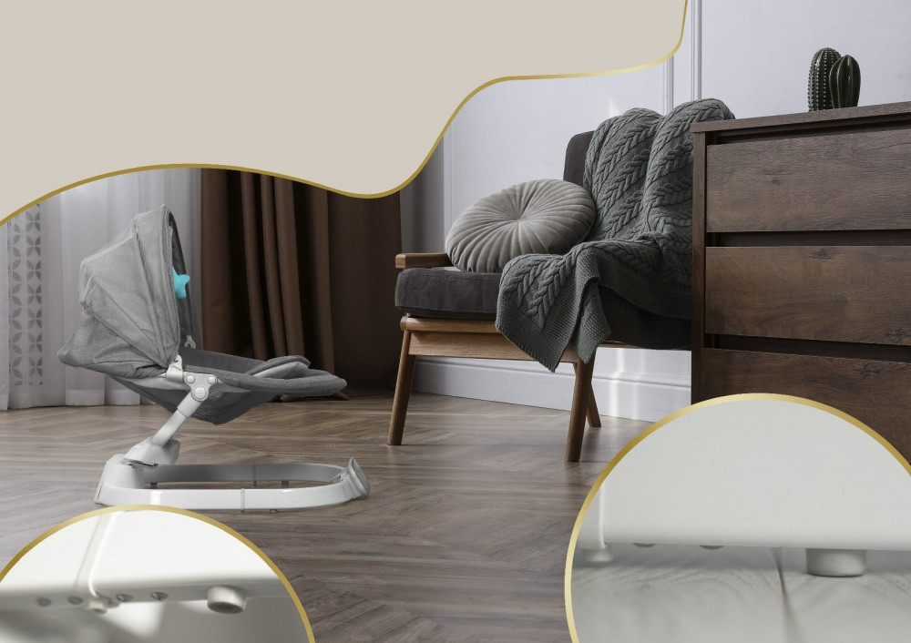 Picioarele din cauciuc atașate bazei leagănului asigură