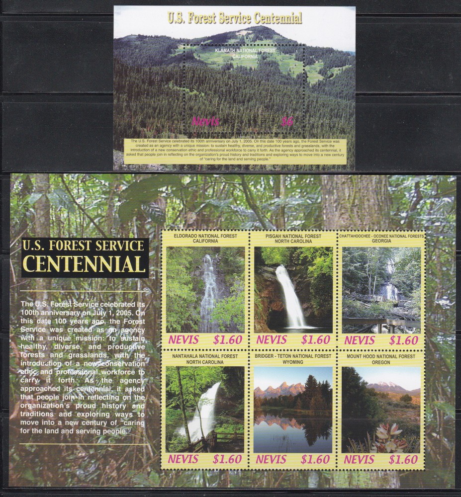 Nevis 2006-100 de ani a Serviciului Forestier al Statelor Unite, Bloc+Colita,MNH