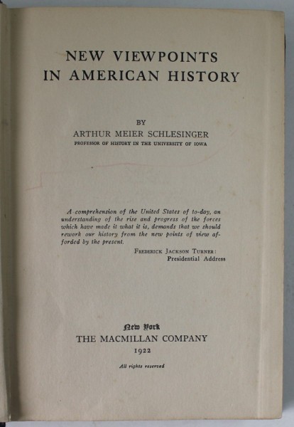 NEW VIEWPOINTS IN AMERICAN HISTORY by ARTHUR MEIER SCHLESINGER , 1922