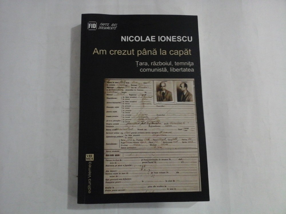 NICOLAE IONESCU (autograf si dedicatie) - AM CREZUT PANA LA CAPAT - TARA, RAZBOIUL, TEMNITA COMUNISTA, LIBERTATEA - Editura VREMEA, 2015 - 429 pag.