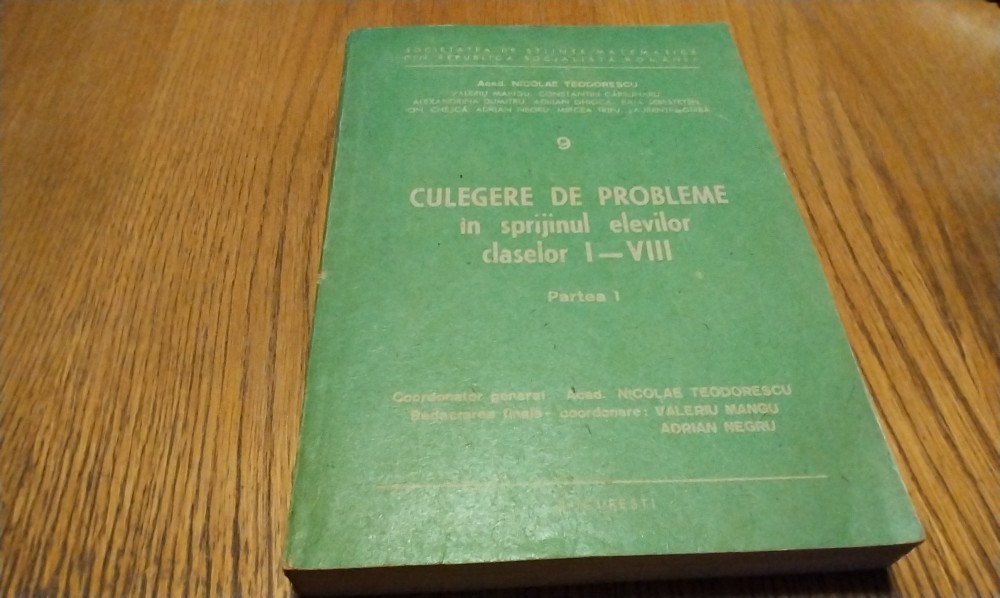 NICOLAE TEODORESCU - Culegere de Probleme Clasele I-VIII - Volumul 9, Partea I - Clasele I-V - Societatea de Stiinte Matematice, 1985, 482 p.