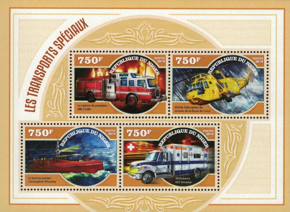 NIGER 2014 - Masini de pompieri / set complet - colita+bloc MNH (2 imagini)