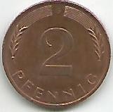 No(3) moneda- GERMANIA (R.F.G.) 2 PFENNING 1994 g