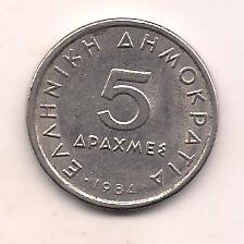No(3) moneda-GRECIA-5 DRAHME 1984