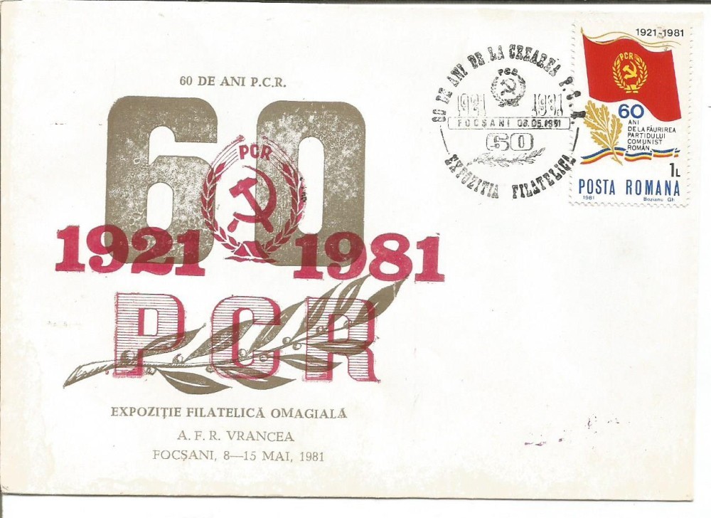 (No2)plic-EXPOZITA FILATELICA OMAGIALA 60 DE ANI P.C.R. 06-15.05.1981