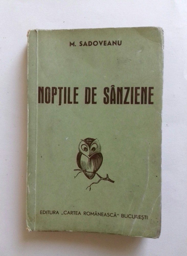 Nopti de Sanziene de M. Sadoveanu, editura Cartea Romaneasca, 1943 – 266 pagini, coperta originala, stare buna, cu legatura stabila, pagini complete si patina specifica varstei. O aparitie interesanta din perioada interbelica tarzie, semnata de un clasic al literaturii romane.
