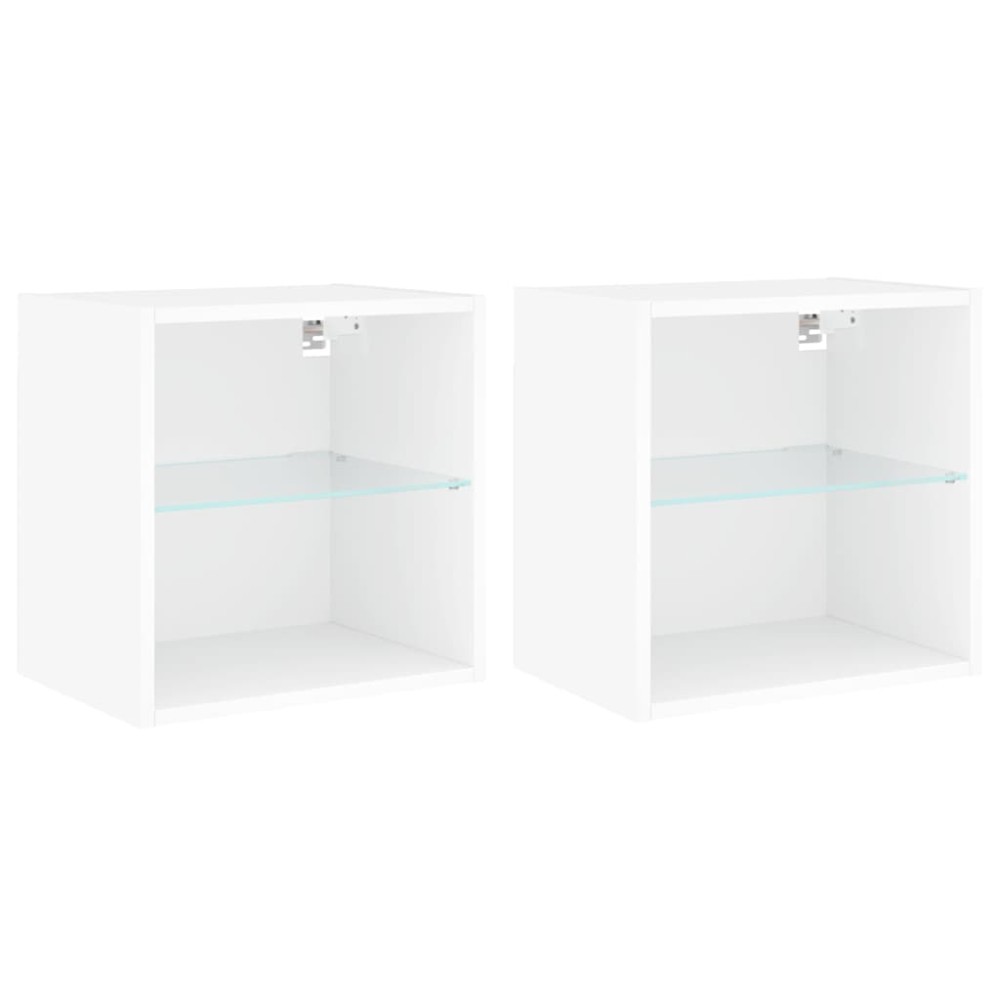 Noptiere cu lumini LED montate pe perete, 2 buc., alb