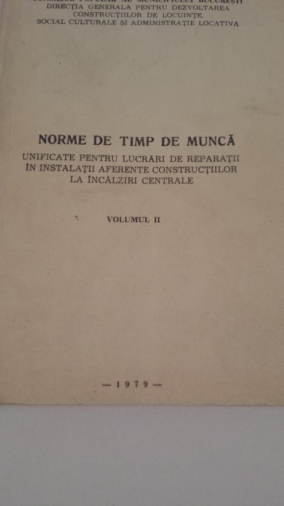 norme de timp de munca - unificate pentru lucrari de reparatii in instalatii aferente constructiilor la incalziri centrale . VOL 2