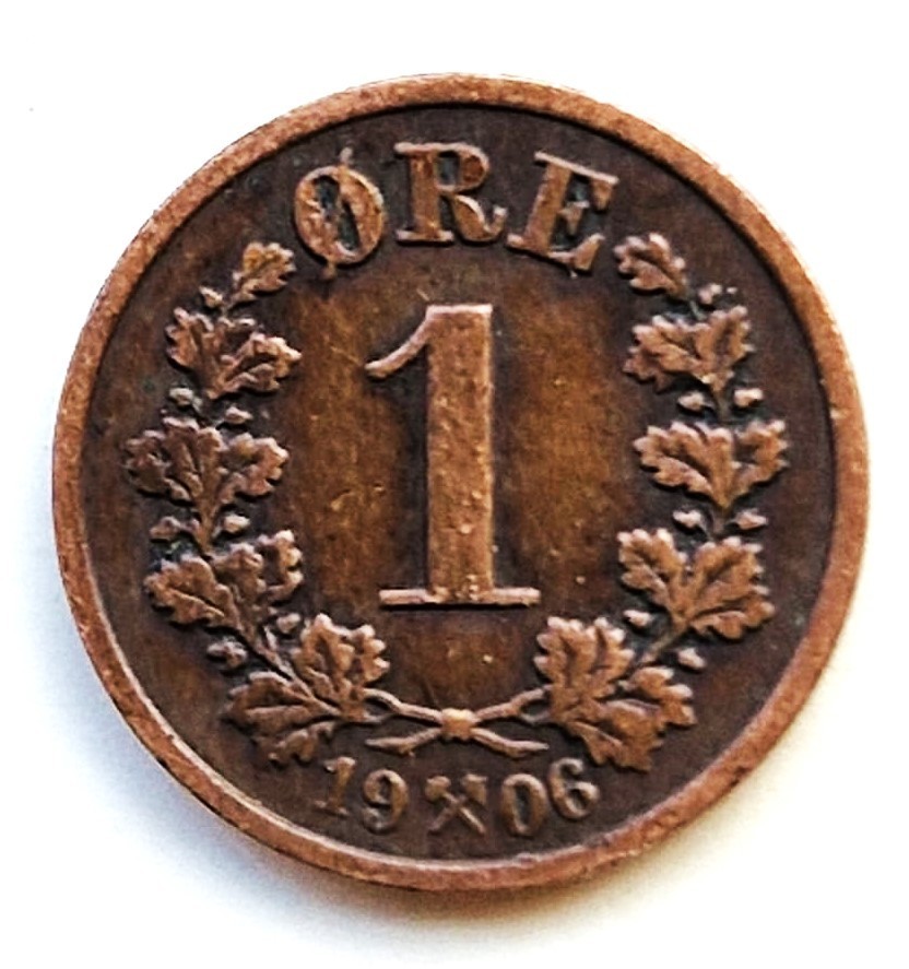 Norvegia 1 ORE 1906 moneda din bronz km # 361 regele OSCAR II