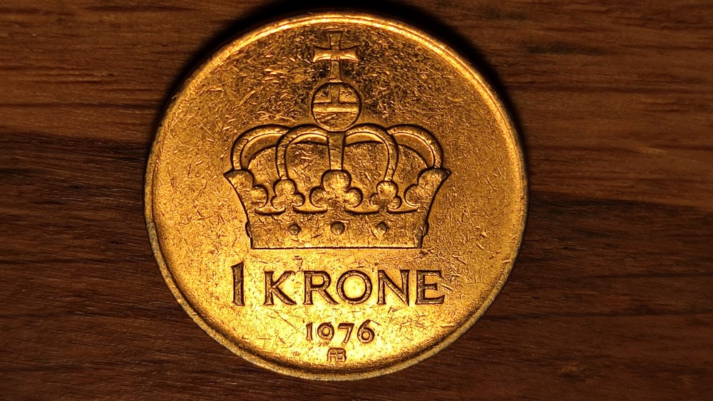 Norvegia - moneda de colectie deosebita - 1 krone 1976 - placata/poleita cu aur