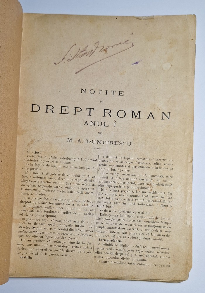 universitar, „Notiţe de Drept roman, Anul I” de M. A. Dumitrescu,
