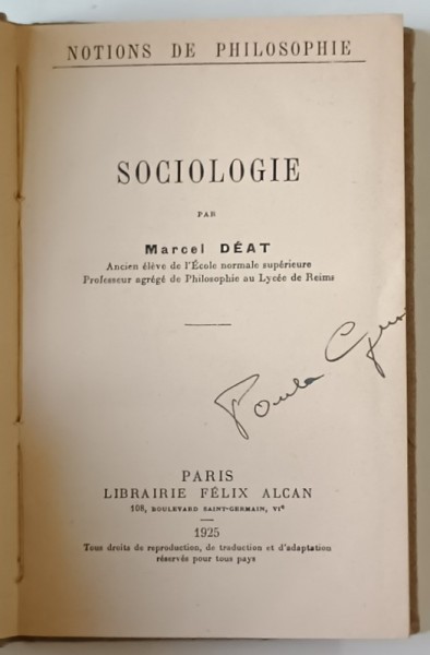 NOTIONS DE PHILOSOPHIE , SOCIOLOGIE par MARCEL DEAT , 1925