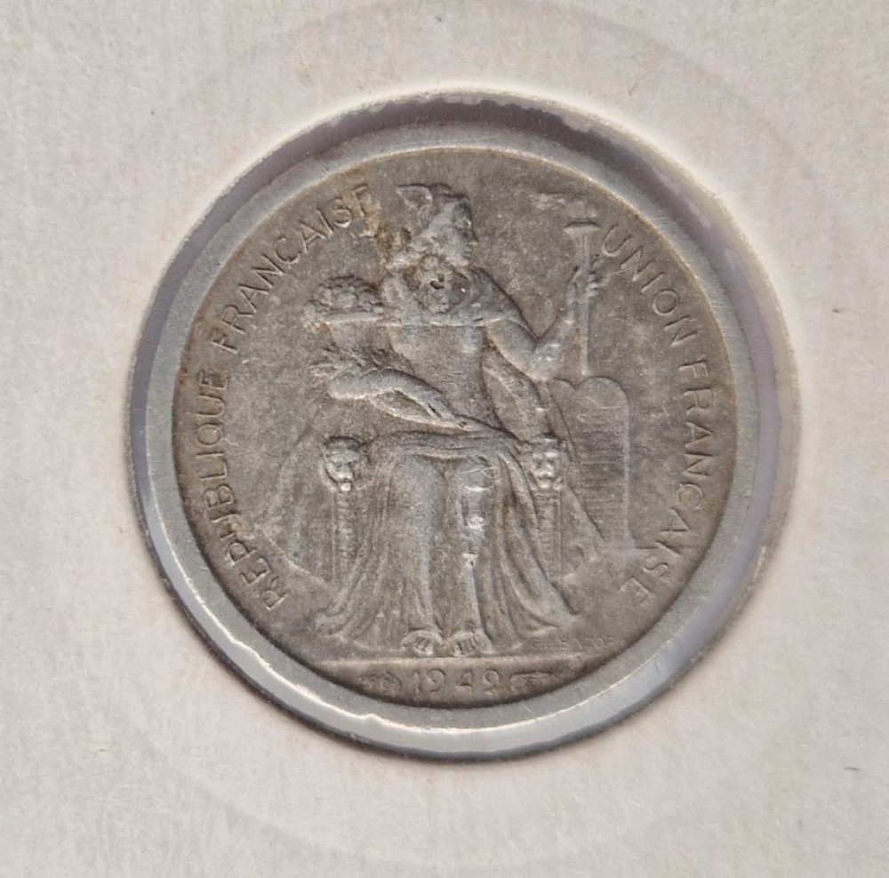 Noua Caledonie 1 Franc 1949 moneda aluminiu km # 2