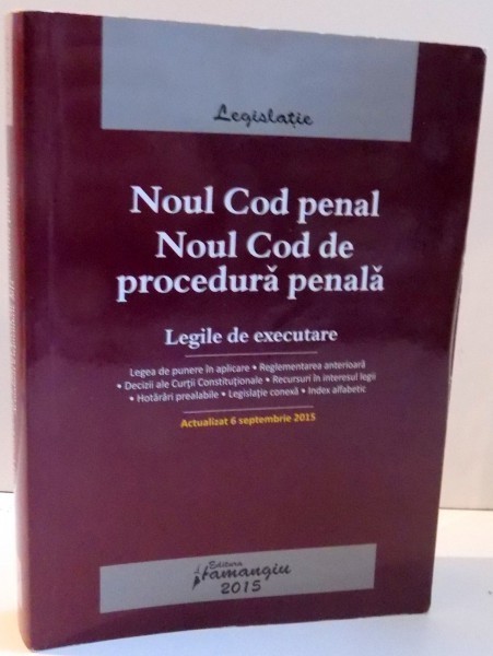 NOUL COD PENAL , NOUL COD DE PROCEDURA PENALA , LEGILE DE EXECUTARE , 2015