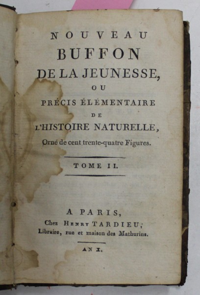 NOUVEAU BUFFON DE LA JEUNESSE OU PRECIS ELEMENTAIRE DE L 'HISTOIRE NATURELLE , TOME II , 1802