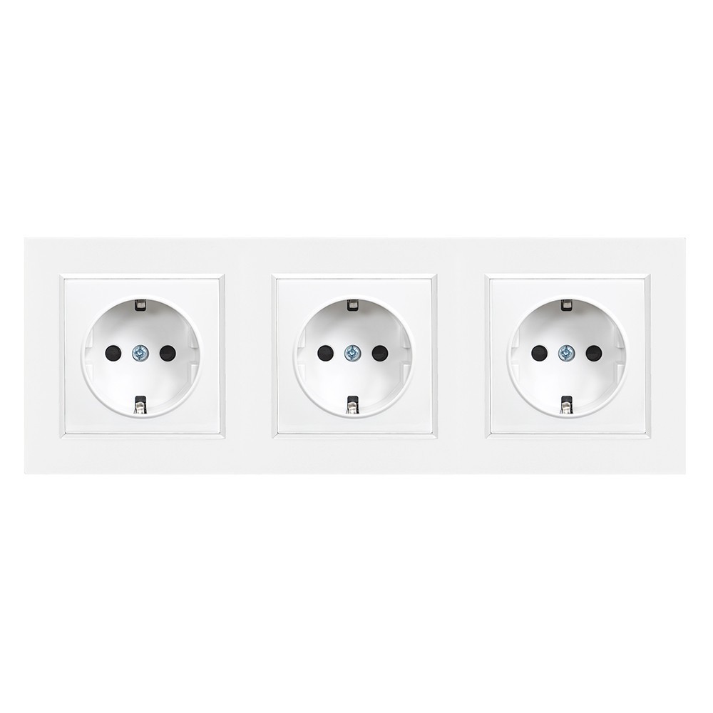 Nova III trei prize cu împământare 16A 250V cu cadru alb