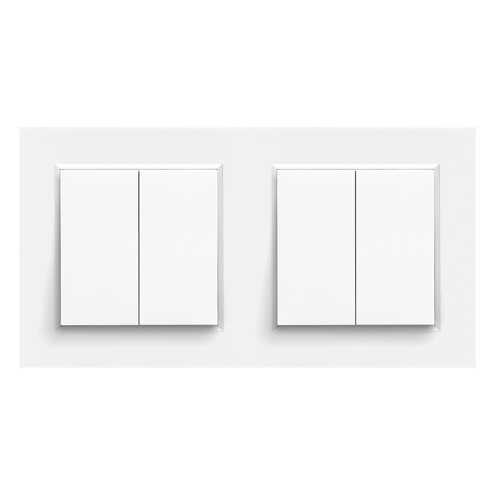Produsul include, de asemenea, un cadru Nova 2 dispus orizontal, de culoare albă, care oferă două module - în acest caz, două întrerupătoare de candelabru - un aspect uniform, estetic. Designul cu margini rotunjite al ramei creează un aspect modern, curat, ceea ce o face perfectă pentru orice stil de interior, fie minimalist, clasic sau modern.