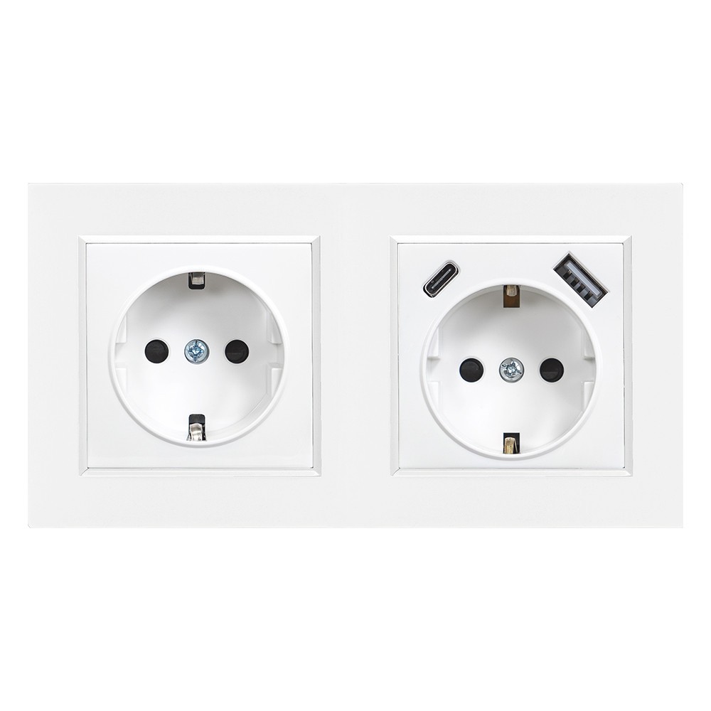 Priza de curent cu împământare Nova cu mufă USB cu ramă albă este alegerea ideală pentru încăperile în care sunt necesare atât o conexiune electrică convențională de 230 V, cât și încărcarea USB rapidă fără adaptor. Porturile USB-A și USB-C vă permit să vă conectați direct telefonul mobil, căștile, ceasul inteligent și alte dispozitive cu consum redus de energie - fără a fi nevoie de un adaptor de alimentare separat.
