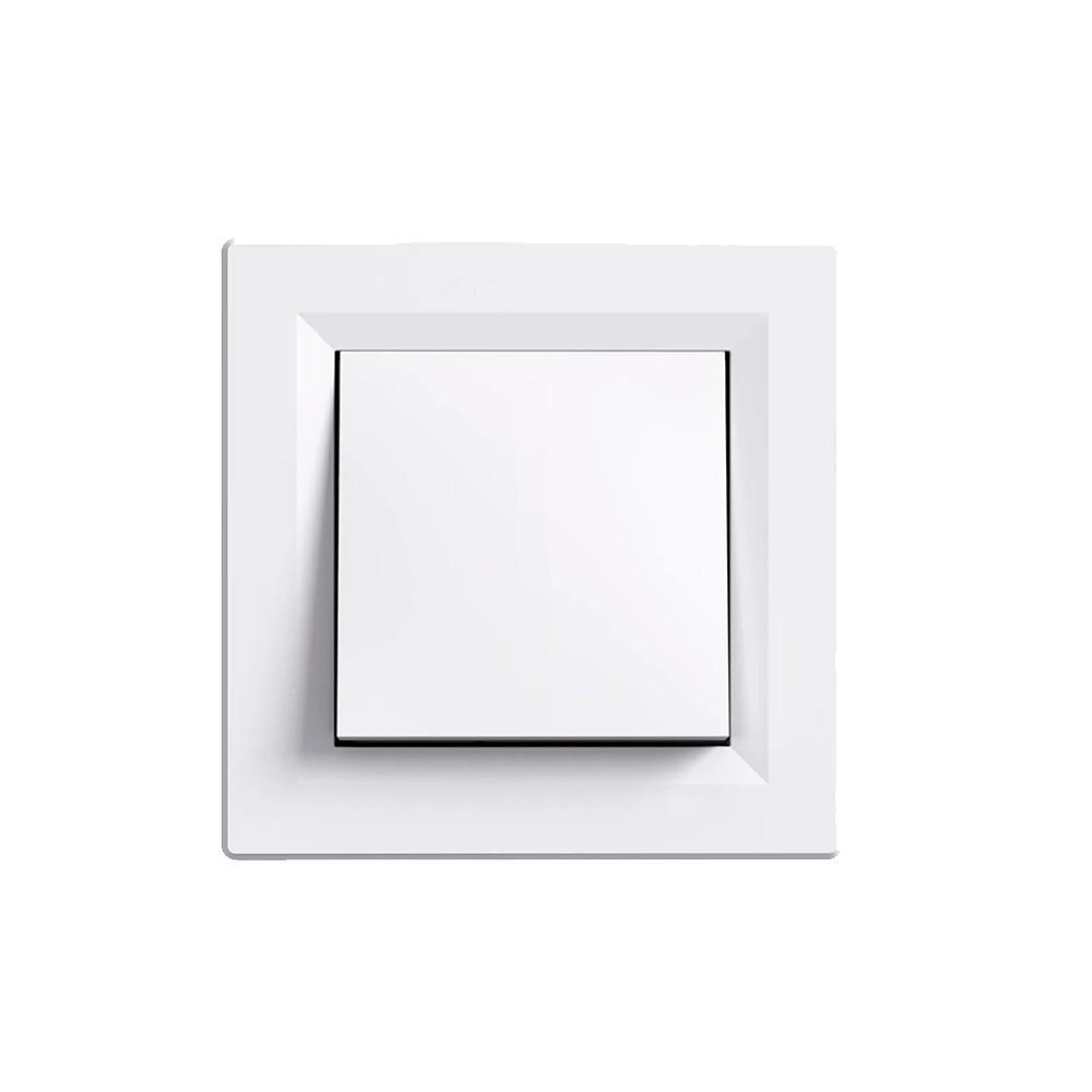 Acest model vine standard cu rama simplă albă Nova , conferind comutatorului un aspect uniform și ordonat imediat după deschidere . Marginea rotunjită și dimensiunea compactă de 83 x 83 mm creează un stil modern și curat, care se va integra în majoritatea designurilor interioare.
