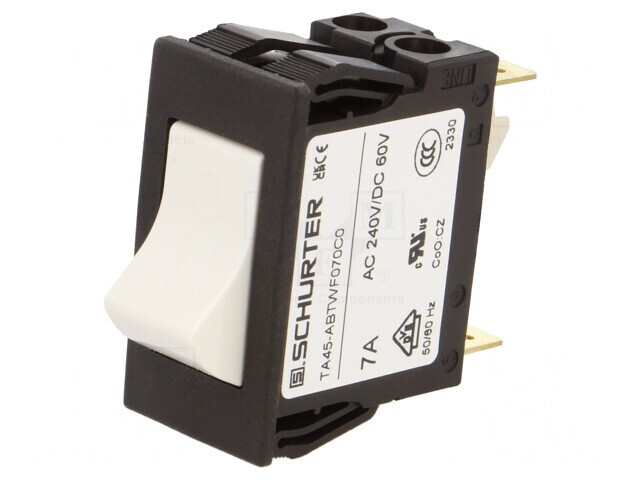 Întrerupătorul de supracurent Unom de la SCHURTER este proiectat pentru a oferi o protecție eficientă împotriva suprasarcinilor și scurtcircuitelor, asigurând astfel siguranța echipamentelor electronice. Cu o tensiune nominală de 240V AC și 60V DC, precum și o rezistență dielectrică de 4kV AC, acest întrerupător este potrivit pentru diferite aplicații industriale. Cu un curent nominal de 7A și o temperatură de lucru cuprinsă între -10 și 55°C, acesta se remarcă prin fiabilitate și performanță. Montarea SNAP-IN și terminalele de tip conectori 6,3x0,8mm facilitează instalarea și conectarea. În plus, întrerupătorul dispune de o configurație pini DPST, cu 2 poli, oferind o protecție eficientă împotriva supracurentului. Cu denumirea comercială MCB și dimensiunile orificiului de montare de 45x21,7mm, acest întrerupător de la SCHURTER se remarcă prin calitate și durabilitate. Optați pentru acest produs pentru a vă asigura că echipamentele dvs. sunt în siguranță și protejate împotriva suprasarcinilor.