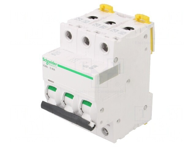 Întrerupătorul de supracurent SCHNEIDER ELECTRIC, model iC60L din seria ACTI9, este proiectat pentru protecția circuitelor electrice cu un curent nominal de 40A și tensiuni nominale de 230/400V AC și 100...144V DC. Dispozitivul este ideal pentru montarea pe șină DIN, asigurând o instalare rapidă și sigură.