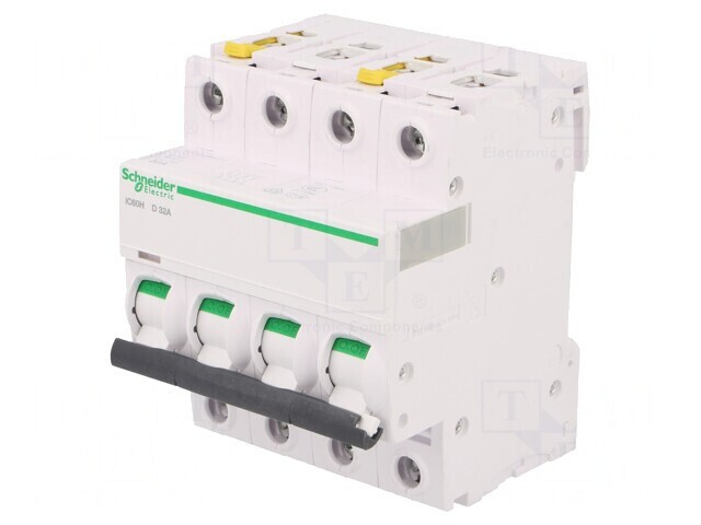 Întrerupătorul supracurent SCHNEIDER ELECTRIC, seria iC60H, este proiectat pentru protecția circuitelor electrice împotriva suprasarcinilor și scurtcircuitelor. Cu un curent nominal de 32A și o tensiune nominală de 400V AC, acest întrerupător de tip MC (Micro Circuit Breaker) oferă fiabilitate și siguranță în instalații electrice industriale și rezidențiale.