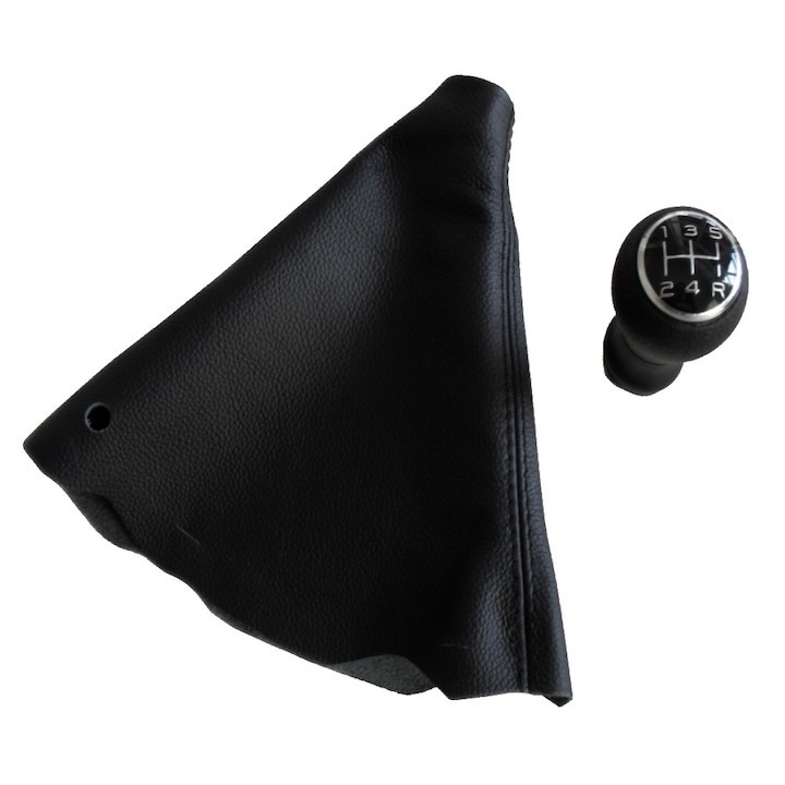 Nuca schimbator viteze, 5 viteze cu manson MARTI-NIK 15 compatibil cu PEUGEOT 206 1998-2014, piele naturala, fara un cadru, negru cu cusatura neagra