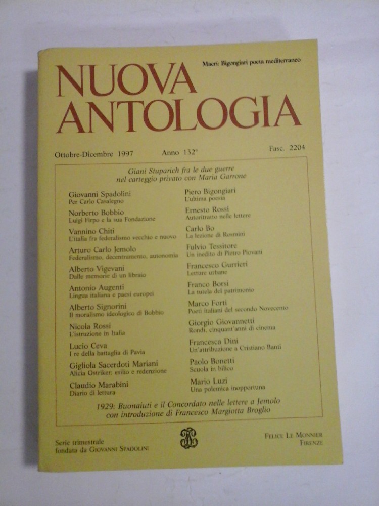 NUOVA ANTOLOGIA Rivista di lettere, scienze ed arti (serie trimestrale Ottobre-Dicembre 1997 Vol. 579 - Fasc. 2204) - Felice le Monnier Firenze - 392 pag.