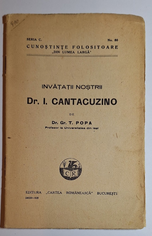 I. Cantacuzino. … Bucureşti, Cartea Românească, [1939]. – 29 p., 19