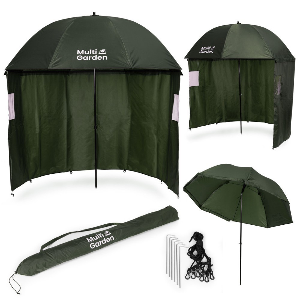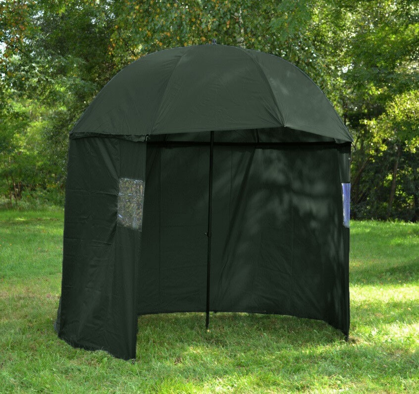 - Husă laterală – în funcție de vreme și de nevoile dumneavoastră, puteți instala și husa laterală inclusă. Fermoarul facilitează instalarea și transformă umbrela într-un adăpost deschis pentru pescuit.