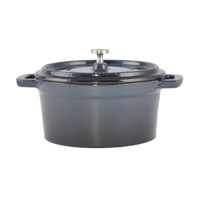 Oala de fonta emailata cu capac, maner din inox, albastra, 0.6 L, Perfect Home