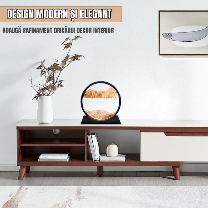 Acest obiect decorativ modern transforma orice incapere intr-un spatiu elegant si relaxant, datorita efectului 3D spectaculos creat de curgerea nisipului rosu in forme unice la fiecare rotire. Miscarea lenta si fluida a nisipului creeaza peisaje mereu diferite, ideale pentru momente de liniste, inspiratie sau contemplare vizuala.