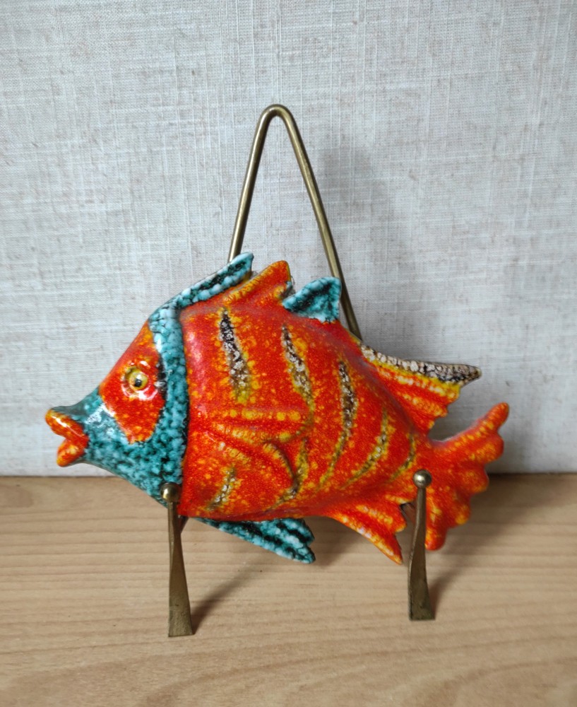 Un obiect decorativ deosebit, în formă de pește, made in Italy.