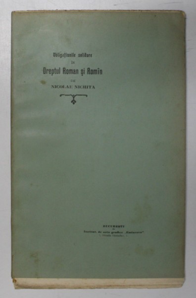 OBLIGATIUNILE SOLIDARE IN DREPTUL ROMAN SI ROMIN de NICOLAE NICHITA , 1904