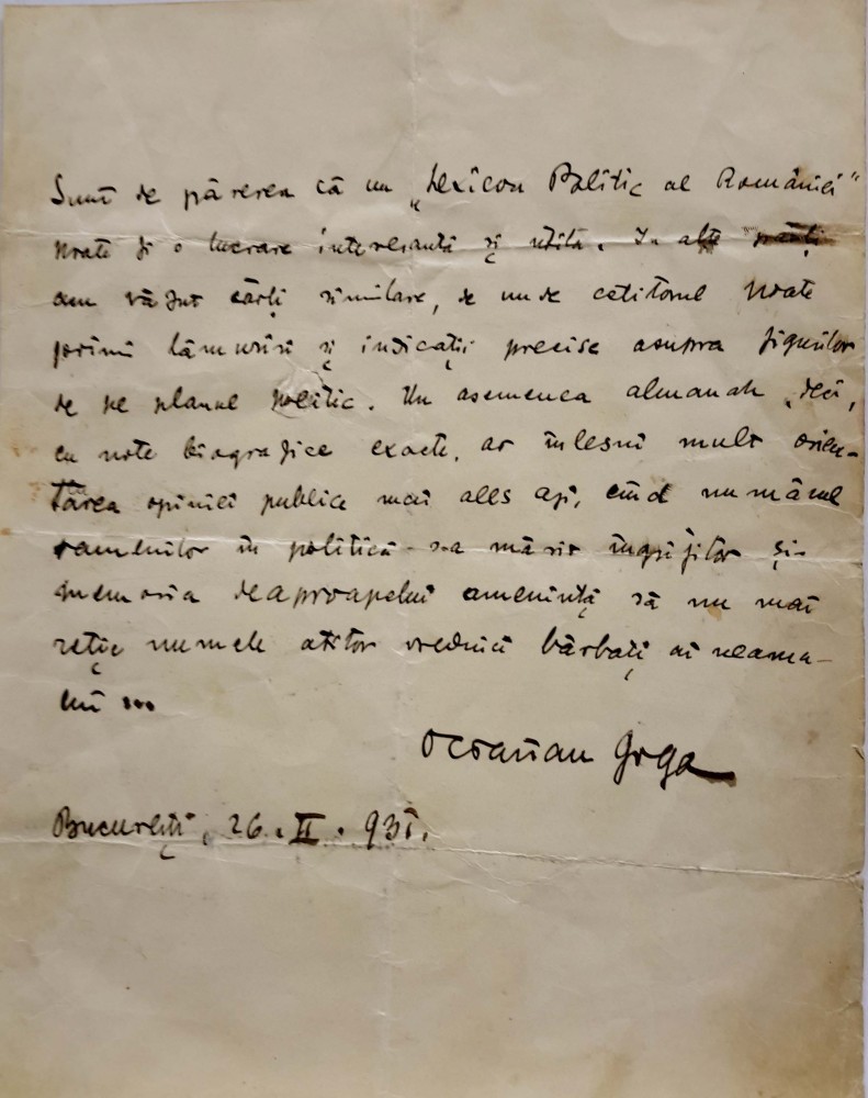 OCTAVIAN GOGA INVOCĂ NECESITATEA UNUI LEXICON POLITIC AL ROMÂNIEI MARI, București, 1937.