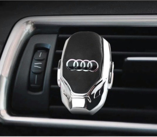 Este confectionat din metal cromat, piele ecologica si LOGO AUDI.