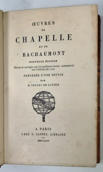 OEUVRES de CHAPELLE et de BACHAUNONT , 1854 , CONTINE EX - LIBRIS , ILUSTRATA CU GRAVURI