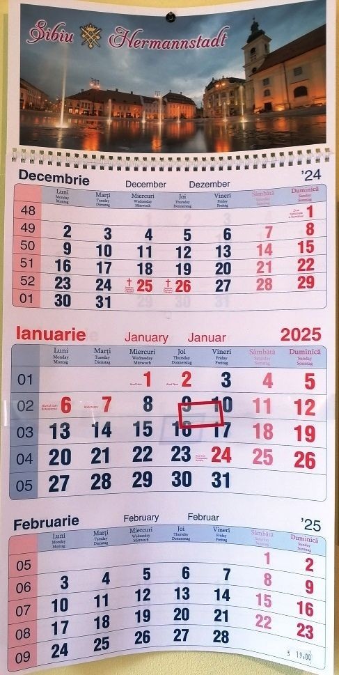 Beschriftung Rumänisch/Englisch/Deutsch\r\nDie praktische Dreimonatsübersicht mit Hermannstadt-Motiv.